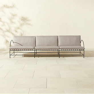 Ready to put that backyard space to good use? We've got all the coolest styles and best outdoor furniture materials, including teak, metal, resin wicker and Sunbrella fabric, to help you create the backyard oasis you've been dreaming of. If you're into all things organic and sustainable (go you!), think teak wood patio furniture. Certified by the Forest Sustainability Council, these wood outdoor furniture pieces let you protect nature while you enjoy it. For a more of-the-moment look, consider metal outdoor furniture. Modern aluminum outdoor furniture is durable and lightweight so you can rearrange your setup with ease. Pair with coordinating outdoor lanterns in black or white for a truly sleek look. Or, stick with a classic—woven outdoor furniture made from resin wicker can carry vintage or tropical looks depending on how you style it. Opt for rattan patio furniture, animal prints and planters full of leafy greens to play up a jungle vibe, or create a quaint look worthy of a tea party with white wicker outdoor furniture and delicate floral decor. Spend your afternoons catching some rays? Get your sunscreen and lemonade ready, then stretch out on our Sunbrella patio furniture. Made from weather-, mold-, mildew- and UV-resistant fabric, this performance outdoor furniture material is ready for anything. No matter which material you choose, take care of your new stuff by covering the pieces with outdoor furniture covers during inclement and cold weather.