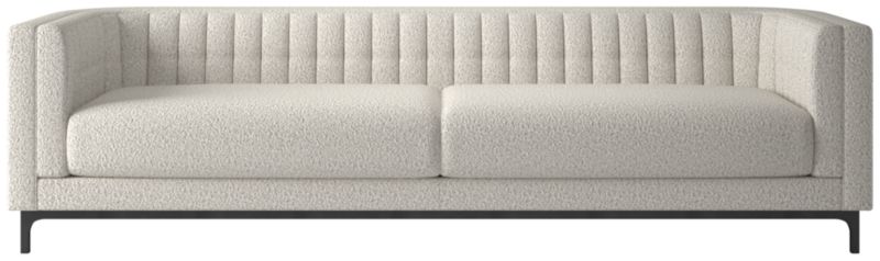 Subtle curves and a channel-tufted back define the architecture of this long, sleek sofa by Mermelada Estudio. Classic details such as blind tufting and welting complement the modern silhouette while highlighting the high level of craftsmanship throughout. Sofa is designed to meet the needs of everyday living. The frame, hand-assembled of kiln-dried hardwood certified sustainable by the Forest Stewardship Council® (FSC), is topped by thick cushions that provide deep comfort and plush support. CB2 exclusive.