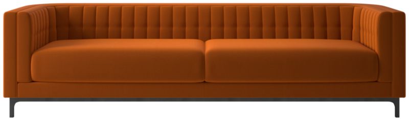 Subtle curves and a channel-tufted back define the architecture of this long, sleek sofa by Mermelada Estudio. Classic details such as blind tufting and welting complement the modern silhouette while highlighting the high level of craftsmanship throughout. Sofa is upholstered in light taupe-toned velvet designed to meet the needs of everyday living. The frame, hand-assembled of kiln-dried hardwood certified sustainable by the Forest Stewardship Council ® (FSC), is topped by thick cushions that provide deep comfort and plush support. CB2 exclusive.