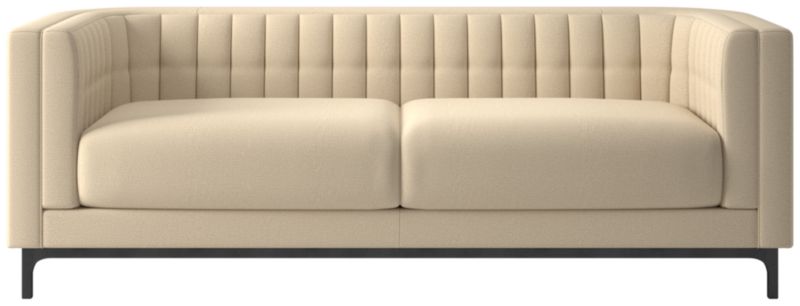 Subtle curves and a channel-tufted back define the architecture of this sleek sofa by Mermelada Estudio. Classic details such as blind tufting and welting complement the modern silhouette while highlighting the high level of craftsmanship throughout. Sofa is upholstered designed to meet the needs of everyday living. The frame, hand-assembled of kiln-dried hardwood certified sustainable by the Forest Stewardship Council® (FSC), is topped by thick cushions that provide deep comfort and plush support. CB2 exclusive.