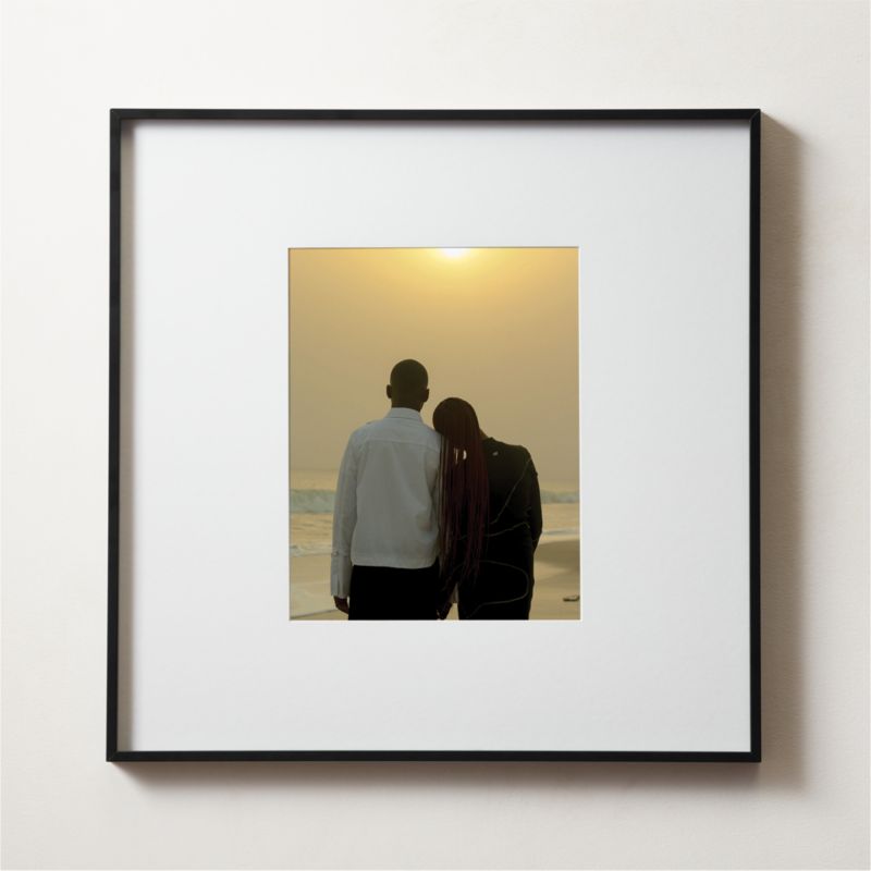 Isabel Okoro's "An Alternate Arrival" is the story of a young couple on the search for something more. Amidst their search for Eternity, they are drawn in by the warm glow of the sun. "I like to draw inspiration from everyday life happenings, because I believe in the magic of normalcy. It takes a certain commitment to freedom to feel comfortable with just being, and I'm trying to get there every day." Original photo reproduced here on luster photo paper. Aluminum frame with matte black finish and white mat. Frame ships separately.