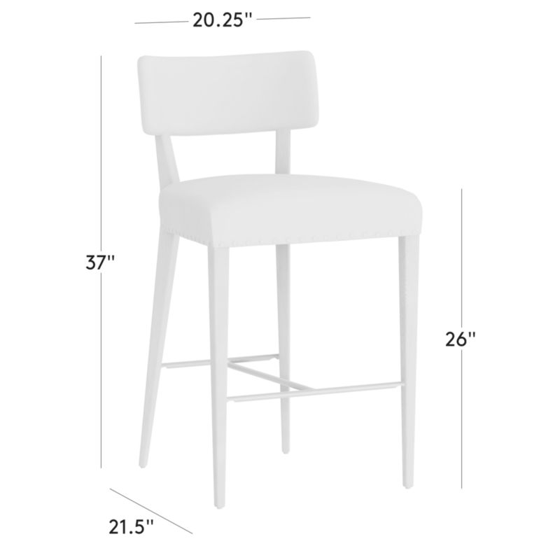 Upholstered in an ivory performance fabric, tailored counter stool by NYC-based designer