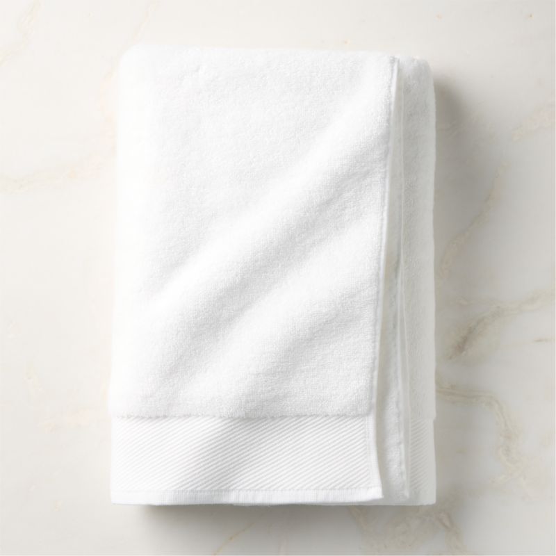 A simple upgrade to the traditional bath towel with unique texture that showcases a jacquard loom technique. Woven of organic cotton, warm white bath towel is durable and machine-washable, making it perfect for everyday use. Also available in a bath mat and bath runner. CB2 exclusive.