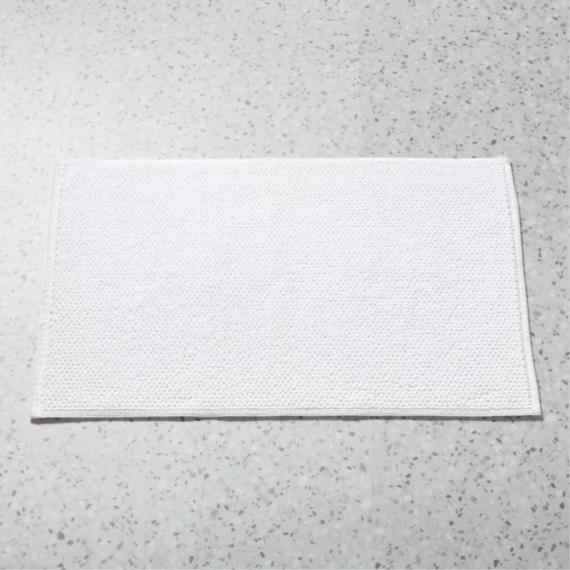 A simple upgrade to the traditional bath mat with unique texture that showcases a jacquard loom technique. Woven of organic cotton, white bath mat is durable and machine-washable, making it perfect for everyday use. Also available in a bath runner. CB2 exclusive.