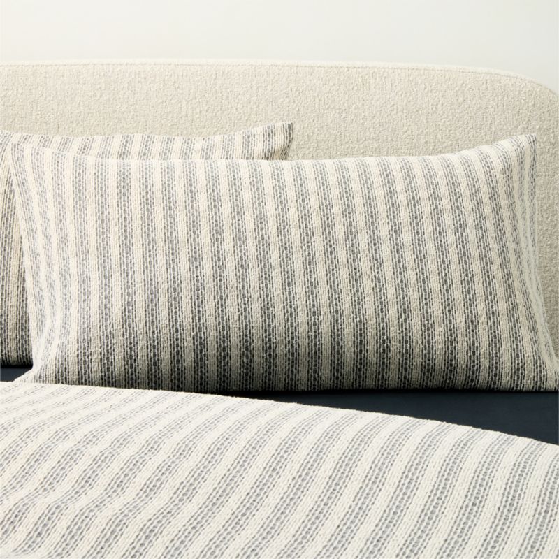 Jacquard-woven in an open lattice-like pattern, elegant pillow shams finish the bed in a sophisticated blend of organic cotton and linen. The jacquard weave—characterized by vertical and horizontal threads—showcases the shams' organic texture with an open, airy look. Fine cotton made in Africa gives the shams a sumptuous softness, while linen adds a touch of delicate texture. Pair with matching duvet cover. CB2 exclusive.