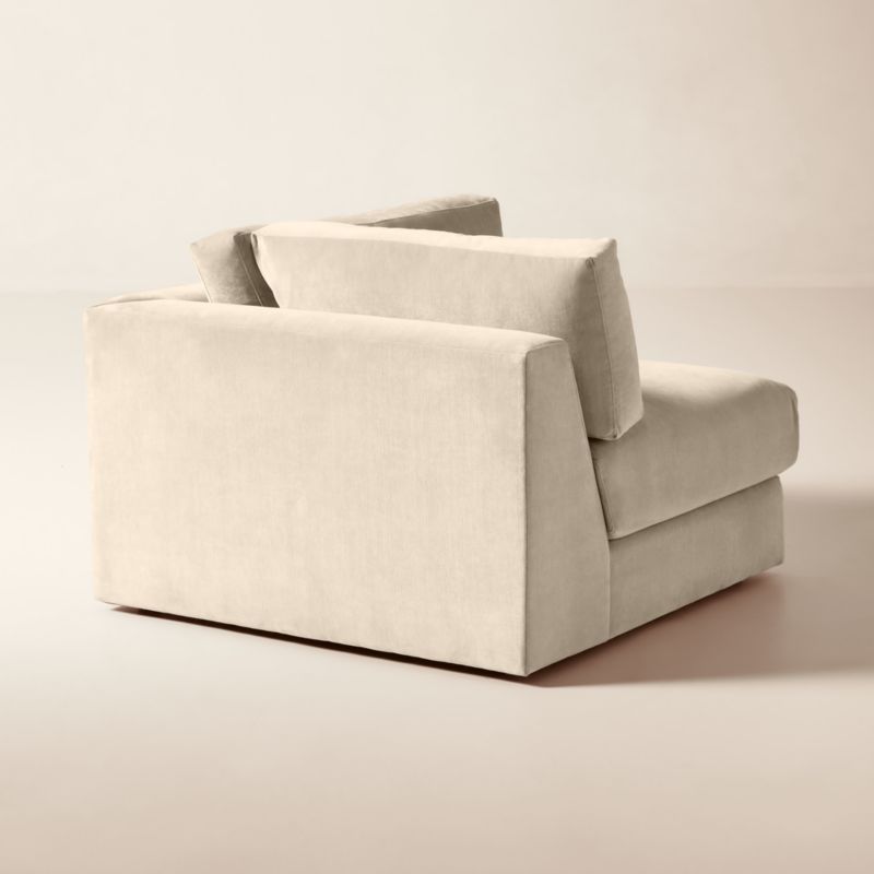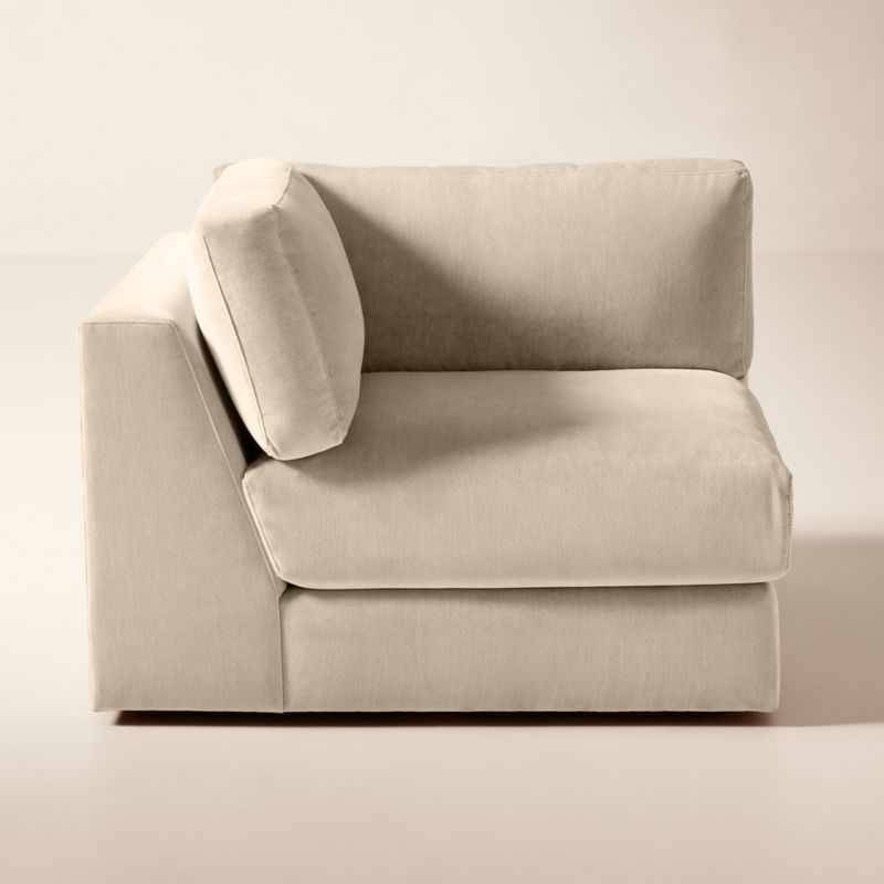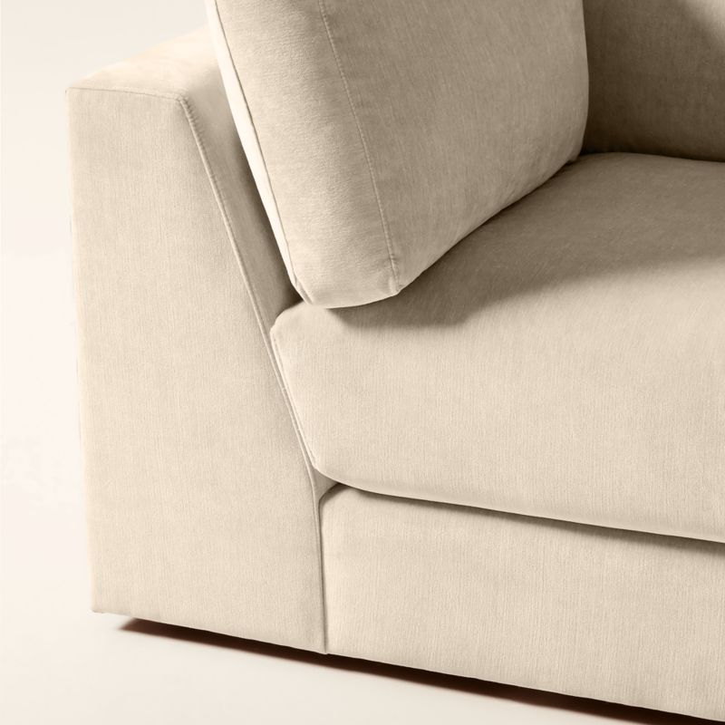 Berkeley strikes the perfect balance between plush seating and a clean, modern aesthetic. Hand-assembled by skilled artisans in North Carolina, the perfectly proportioned sectional is flanked by wide arms that leave extra room for resting. Crafted of hardwood certified sustainable by the Forest Stewardship Council ® (FSC), the durable frame is covered in soft taupe performance velvet with neat stitching to keep the look clean yet casual. CB2 exclusive.