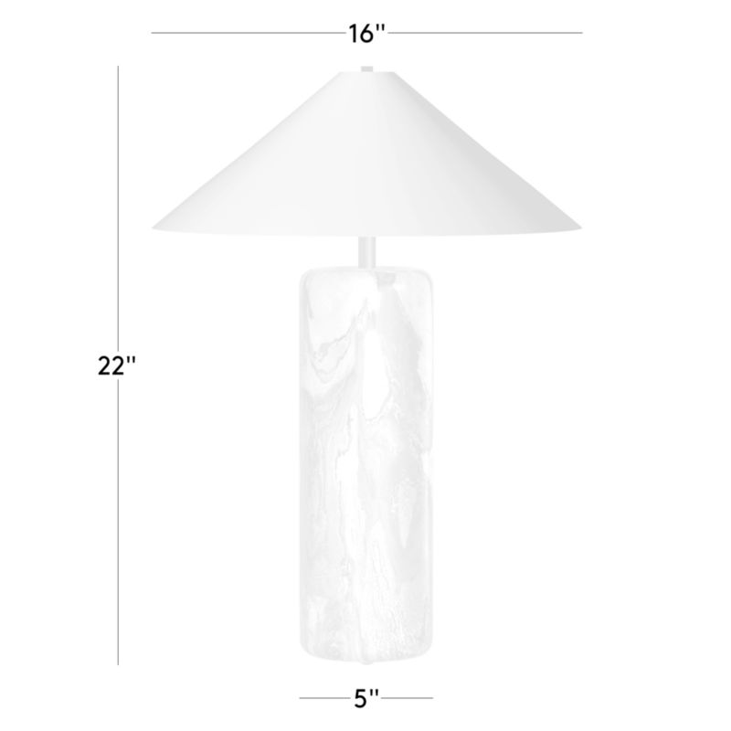 Tall marble table lamp by Melbourne-based design studio VUUE pairs clean lines with an elevated mix of materials. Carved from a solid piece of floral jade marble, the base is topped with a crisp white linen shade to cast a soft glow. The marble's bold veining means no two lamps are exactly alike. CB2 exclusive.