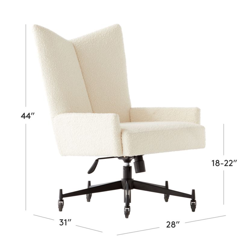 Cream wool boucle office chair by iconic midcentury designer Paul McCobb has a commanding presence in any office—rightfully so, given this model has been owned by publishing magnates and titans of industry throughout the decades. Has both tilt-back and gas-lift adjustable seat features. CB2 exclusive.