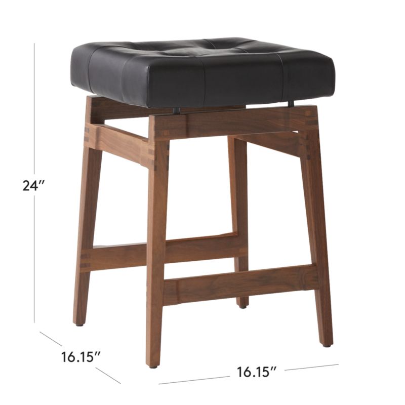 Quietly sophisticated and undeniably elegant, black leather stool is based on a Gianfranco Frattini design from the 1950s. Originally produced in limited quantities for the grand Hotel Parco dei Principi in Rome (itself a masterpiece by architect Gio Ponti) Frattini's timeless design has become a coveted collectors' item. Now, reintroduced in collaboration with the Frattini estate, our stool retains the design and richness of materials. A frame of walnut wood, finished in a warm brown stain and certified by the Forest Stewardship Council ®, displays exemplary joinery and detailing. As for the plush, tufted cushioned seat? It's covered in rich black Italian leather, which will only become more beautiful with age. CB2 exclusive.