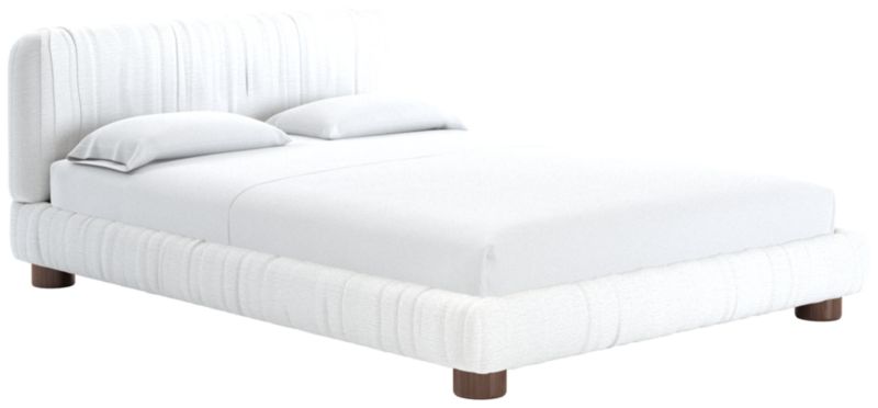 Fully upholstered bed by Jannis Ellenberger brings luxury and drama to the bedroom. Padded headboard, footboard and rails are enveloped in ruched fabric; stout cylindrical legs, crafted of oak certified sustainable by the Forest Stewardship Council® (FSC), keep the look modern. CB2 exclusive.