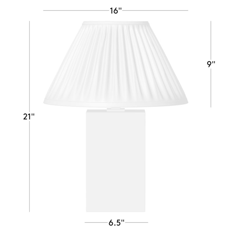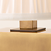 Classic aged brass table lamp by Chicago-based AD100 designer Kara Mann is topped with a white linen shade pleated by hand for softly diffused light. The warm, unlacquered brass is aged by hand in a multistep process to bring out the metal's rich tonal highs and lows. The living finish will continue to deepen and grow richer over time. CB2 exclusive.