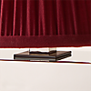 Classic polished nickel table lamp by Chicago-based AD100 designer Kara Mann is topped with a burgundy linen shade pleated by hand for softly diffused light. CB2 exclusive.