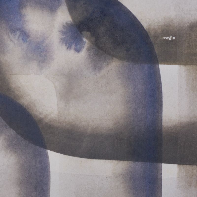 Borrowing from the color palette of a spring flower, "Cavan III" is part of a larger collection that explores the concept of connectivity and varying points of intersection in our collective experiences. Gouache paints in hues of blue create a deep range of opacity and transparency that is masterfully reproduced as a giclée print.