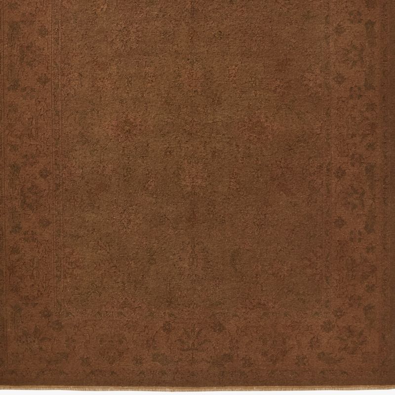 Woven by hand using the ancient soumak technique, area rug reflects centuries of textile artistry and craftsmanship. Originating in the Caucasus village of Shemaka, the soumak method involves intricately wrapping yarns over and under warp threads to produce a dense, highly detailed pattern. Crafted from a luxurious wool blend, the Cecile rug's all-over motif of stylized florals and vines evokes a sense of timeless beauty. A final step of overdyeing the rug produces its rich, tonal brown color. Renowned for their strength and durability, soumak rugs are designed to endure, creating a thick, resilient textile that will only grow more beautiful with age—a true heirloom in the making. CB2 exclusive.
