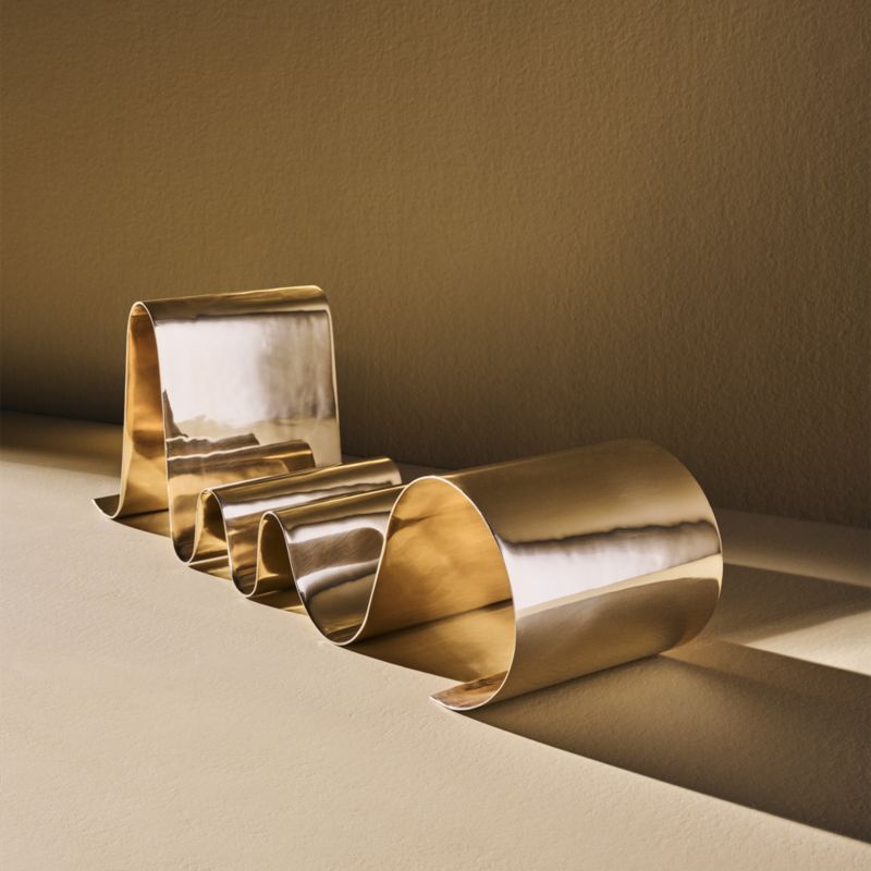 Nicholas Obeid elevates solid brass to artful form. "My inspiration behind the piece was, in fact, ribbon—its softness and fluidity. And I like the juxtaposition of the soft curves in the hard metal." Crafted of solid unlacquered brass, the piece will patina as it ages, developing character and depth over time. CB2 exclusive.