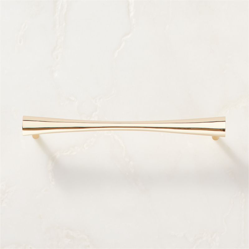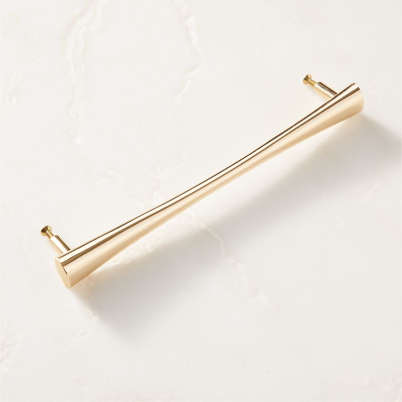 Mermelada Estudio is crafted of solid polished brass for a lustrous finish. Offering a comfortable grip, the refined design is inspired by a bow tie—thin in the center and flared at each end. Brass is unlacquered, offering a living finish that will develop the patina of a vintage find. Designed to coordinate with the Cravat knob. CB2 exclusive.