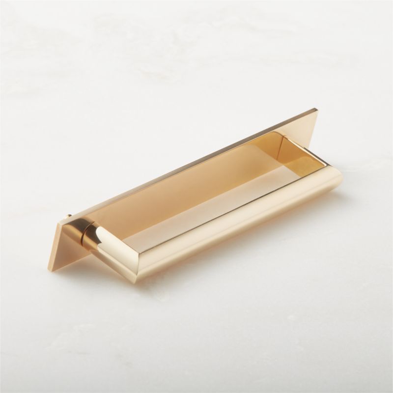 Crafted of solid brass, curved cabinet handle by Barcelona-based Mermelada Estudio evokes a modern sensibility. Brass is unlacquered, offering a living finish with the patina of a vintage find. Pair with the Curveaux knob for a cohesive look. CB2 exclusive.