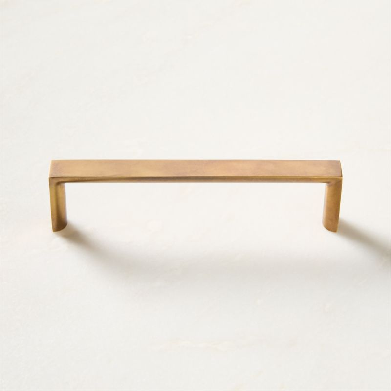 Solid brass handle by Barcelona-based Mermelada Estudio sports sleek lines and subtle curved design details with an antiqued finish applied by hand. Pair with the Damon knobs for an upscale look. CB2 exclusive.