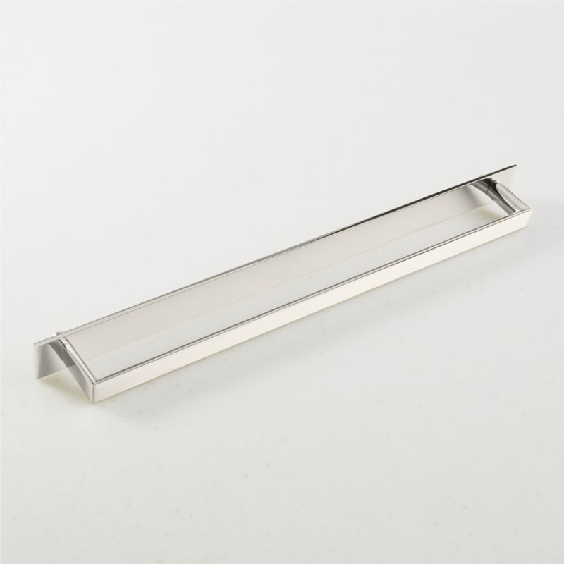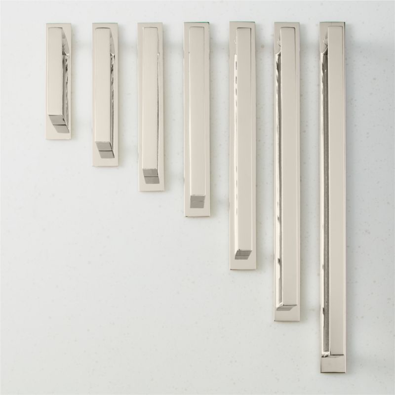 Barcelona-based Mermelada Estudio's cabinet handle and coordinating backplate sport sleek lines and subtle curved details, crafted of solid brass in a polished nickel finish that elevates any space. Learn about Mermelada Estudio on our blog. CB2 exclusive.