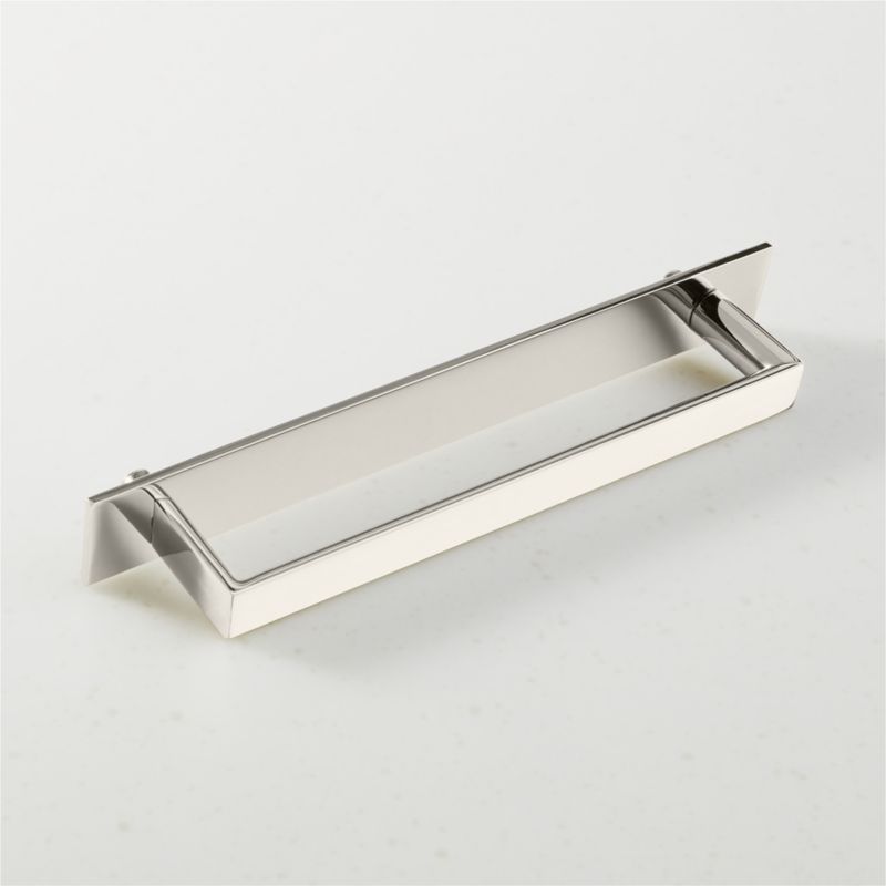 Barcelona-based Mermelada Estudio's cabinet handle and coordinating backplate sport sleek lines and subtle curved details, crafted of solid brass in a polished nickel finish that elevates any space. Learn about Mermelada Estudio on our blog. CB2 exclusive.