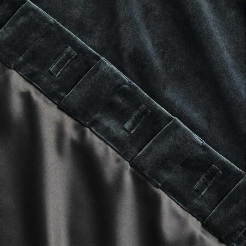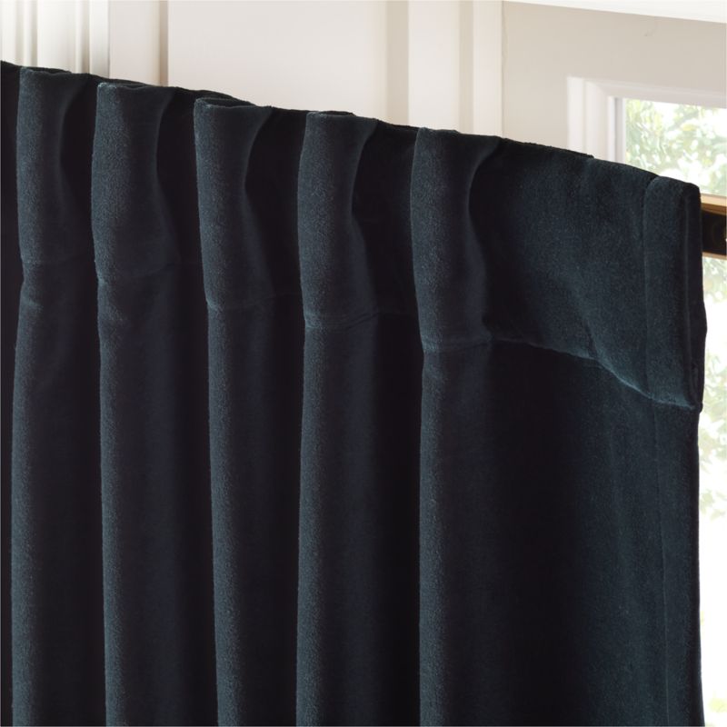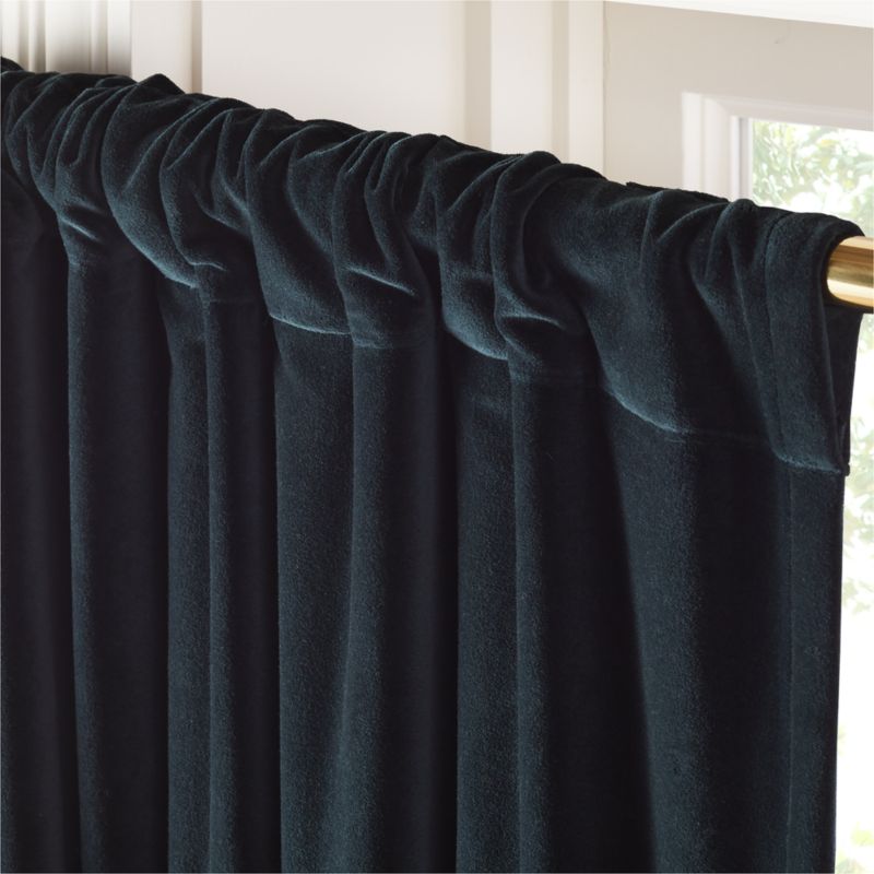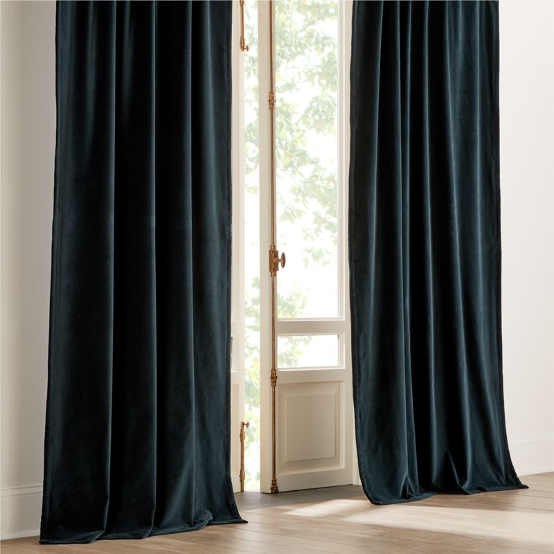 Transform your space with the help of our talented designers. Book NowLush organic cotton velvet frames windows in luxurious warmth. Rich in texture and beauty, dark green velvet curtain panel reduces sound and darkens the room with polyester blackout lining. Hangs beautifully with back tabs, rod pocket or drapery hooks. CB2 exclusive.