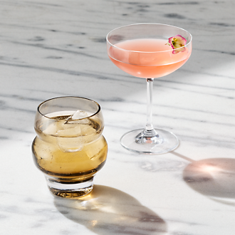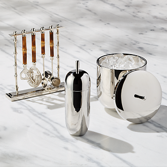 Raise your cup. Whether you're the type to partake in happy hour or just enjoy watching from the sidelines, let contemporary drinkware and bar accessories take center stage. Want to show off your newly-minted mixology skills? Invite the gang over for a casual hangout. Begin by stocking the bar cart's shelves with the basics. Think old-fashioned and cocktail glasses for friends who know what they like, and wine glasses for those who fancy themselves connoisseurs. Keep chaser and martini glasses nearby as well for the wild cards in your group. Want to keep it low-key yourself? Fill a pitcher with ice cold water that's infused with a cucumber or lemon—helping you maintain hydration between rounds. No matter your style, coasters preserve the like-new look of your tall table, while reusable straws coincide with the room's environmentally-friendly vibe.