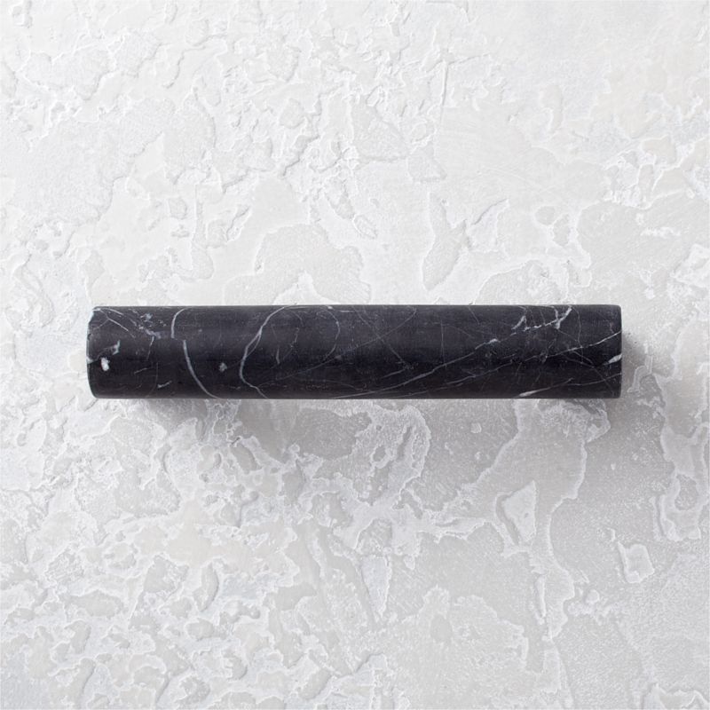 New Orleans-based designer Marion Cage pairs chunky black marquina marble with solid, black-finished brass in this modern handle. Substantial in thickness and weight, it instantly elevates the kitchen or bath. CB2 exclusive.