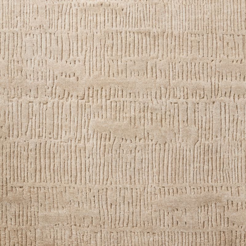 Understated and artfully composed, taupe area rug is hand-knotted from 100% New Zealand wool in a traditional Persian weave. A subtle linear pattern emerges across the low cut pile—adding quiet texture and visual depth without overwhelming the space. With a fine knot density of 20 knots per square inch, this rug is well-suited for medium-traffic areas. CB2 exclusive.
