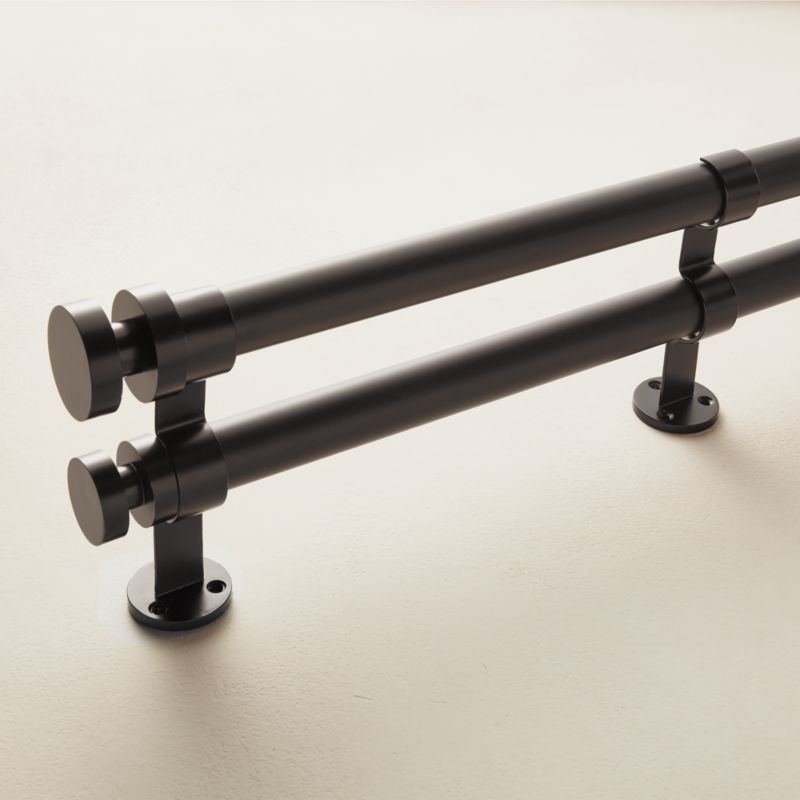 Traditional double curtain rods at first glance, with an unexpected pop of modernity that pairs up in detail on either end. Designed by Mermelada Estudio and finished in edgy matte black. CB2 exclusive.