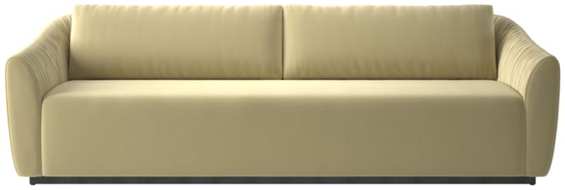 Designed by Caleb Zipperer of Zipperer Studio, this deep, enveloping sofa showcases a sculptural silhouette accentuated by gathered detailing along the arms and back. Built with wood certified by the Forest Stewardship Council® (FSC), it rests on a black-stained inset plinth base for a grounded finish. The firm seat cushion is paired with three loose back cushions in a feather and down blend for added comfort and ease. CB2 exclusive.