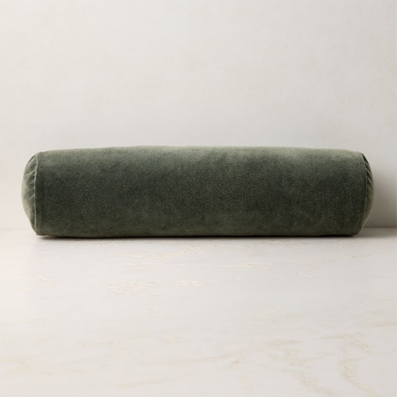 • View Encino Smoked Green Organic Cotton Stonewashed Velvet Bolster Throw Pillow 24"x6" - image 1 of 6