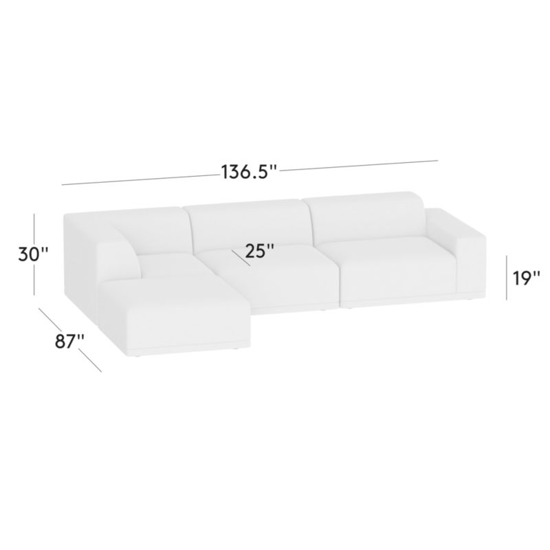 Faible 4-Piece L-Shaped White Performance Linen Standard Depth Sectional Sofa with Right Arm30height126.5width87depthMeasurements are in inches.76.2height321.31width220.98depthMeasurements are in centimeters.