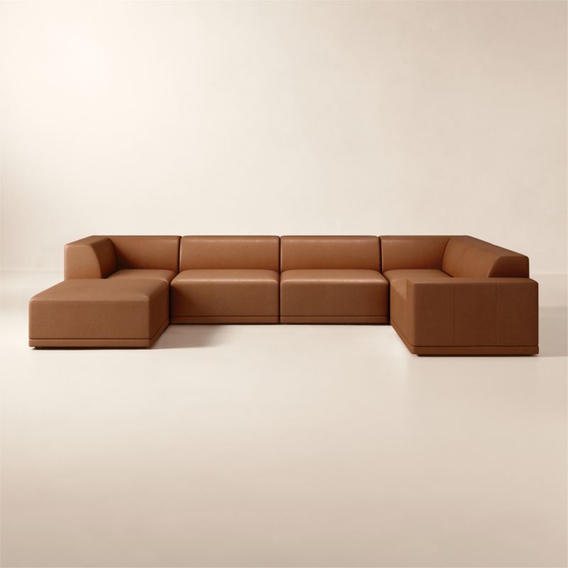 Faible 6-Piece U-Shaped Leather Standard Depth Sectional Sofa with Right-Arm