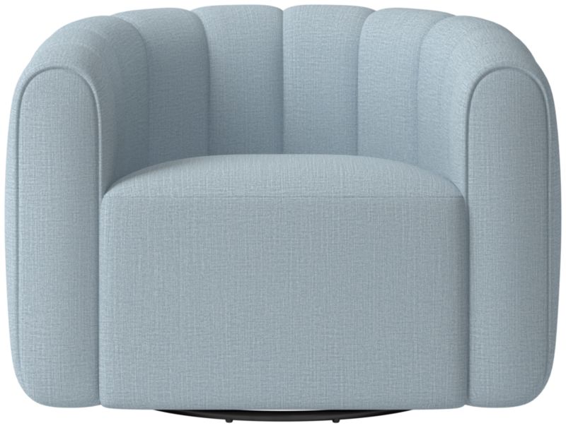 Channel-tufted, deco-inspired swivel chair makes a vintage statement wherever it sits. Designed by VUUE and crafted of hardwood certified sustainable by the Forest Stewardship Council® (FSC), the chair looks good from every angle. CB2 exclusive.