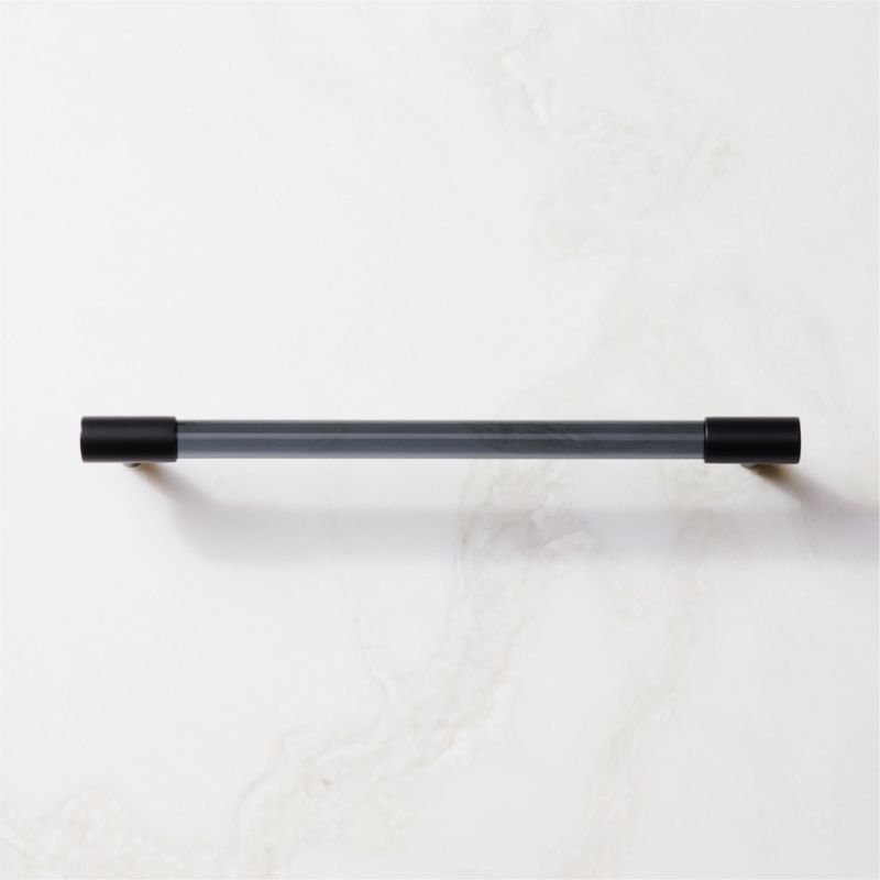 Framed by black brass hardware, smoked crystal adds a femine touch to this elegant handle. Pairs with the Flynn knobs for a cohesive look. CB2 exclusive.