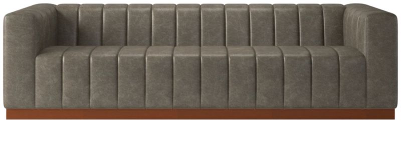 Forte 101" Extra-Large Channeled Leather Sofa with Walnut Base Bello Grey26.5height101width38.75depthMeasurements are in inches.67.31height256.54width98.42depthMeasurements are in centimeters.