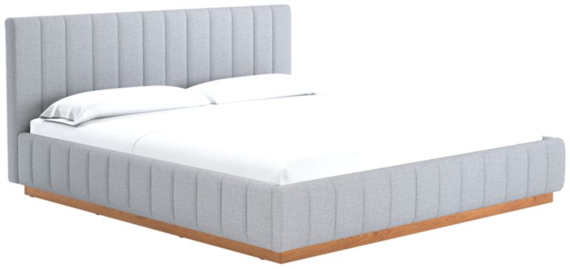 Designed by Mermelada Estudio, cushy channels of lush upholstery line the length of this finely tailored bed. Plinth oak wood base keeps a minimal profile finished in a subtle whitewash. A true statement piece. Learn about Mermelada Estudio on our blog. CB2 exclusive.