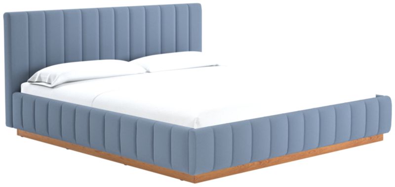 Designed by Mermelada Estudio, cushy channels of lush upholstery line the length of this finely tailored bed. Plinth oak wood base keeps a minimal profile finished in a subtle whitewash. A true statement piece. Learn about Mermelada Estudio on our blog. CB2 exclusive.
