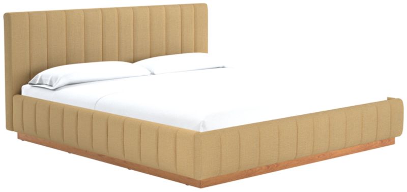 Designed by Mermelada Estudio, cushy channels of lush upholstery line the length of this finely tailored bed. Plinth oak wood base keeps a minimal profile finished in a subtle whitewash. A true statement piece. Learn about Mermelada Estudio on our blog. CB2 exclusive.
