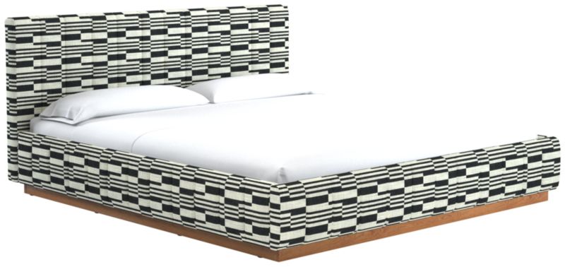 Designed by Mermelada Estudio, cushy channels of lush upholstery line the length of this finely tailored bed. Plinth oak wood base keeps a minimal profile finished in a subtle whitewash. A true statement piece. Learn about Mermelada Estudio on our blog. CB2 exclusive.