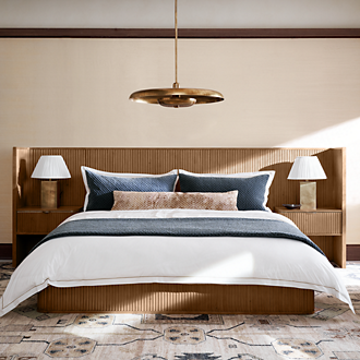 Just because it's where you get your shut-eye doesn't mean you should settle for anything less than the best modern furniture for the bedroom. Whether you want to go minimalist or mid-century modern inspired, furnish the space with a bed, dresser and nightstand that speak to your style. Trust us: You'll sleep better on a new bed that fulfills all your design dreams. As the centerpiece of your bedroom, the bed should cradle you in comfort while exuding a sense of modern elegance. Every piece of modern bedroom furniture you select should contribute to the overall feeling of tranquility and harmony. When you shop for bedroom furniture, think about how each piece makes you feel. Is it inviting and cozy, or does it inspire a sense of calm and balance? Your bedroom should be a place where you feel safe, relaxed, and at peace, a retreat from the world where you can truly be yourself and recharge for the day ahead. To craft your dream bedroom, shop bedroom furniture that aligns with your personal style, whether it's eclectic, simple, or somewhere in between. Elevate the ambiance with thoughtful lighting, textiles, and decor to make your bedroom a serene and stylish haven.