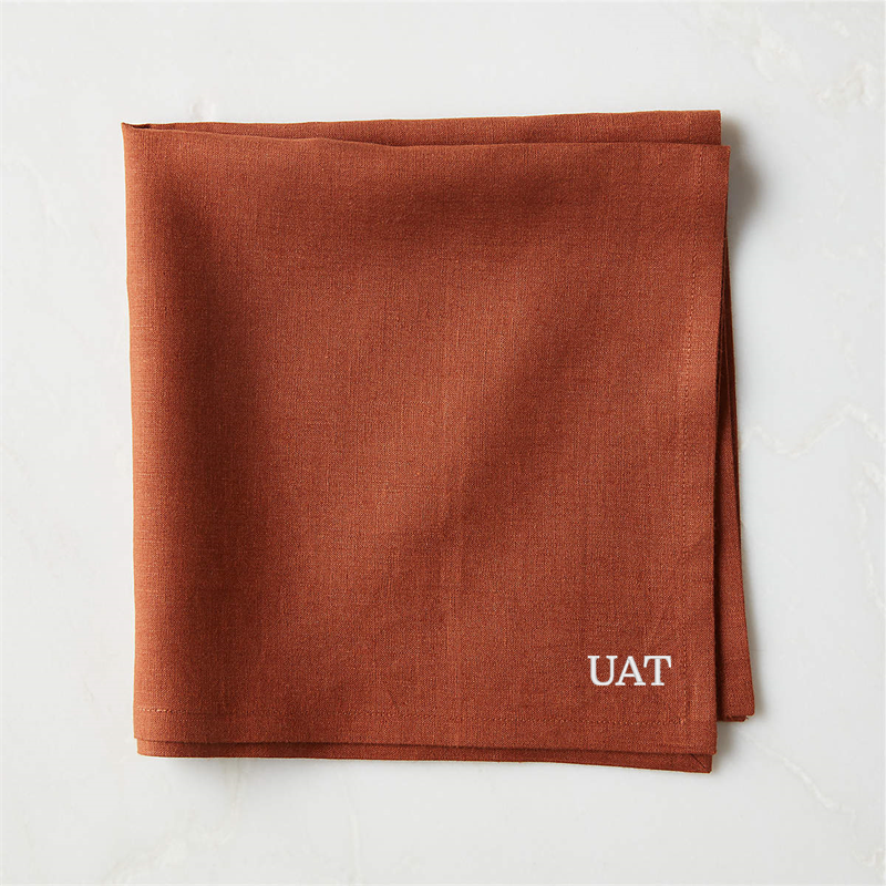 In stock and ready to ship. Loading...CB2SKU 449915Personalized Bolt Ginger Orange Linen NapkinCAD 31.95includes CAD 15 personalization feeFree Shipping Eligible0 of 1 purchasedAdd to Cart