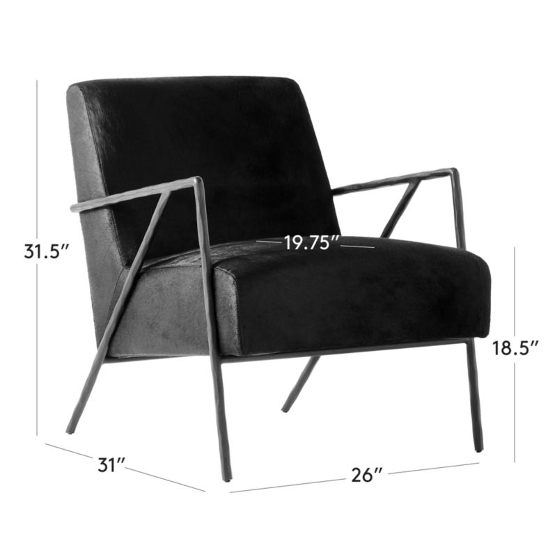 Structured lounge chair from German designer Jannis Ellenberger marries traditional hammered steel with the modern look of black hair-on-hide upholstery. Black hammered steel arms and legs reveal an organic texture that contrasts beautifully with the smooth black hide. CB2 exclusive.