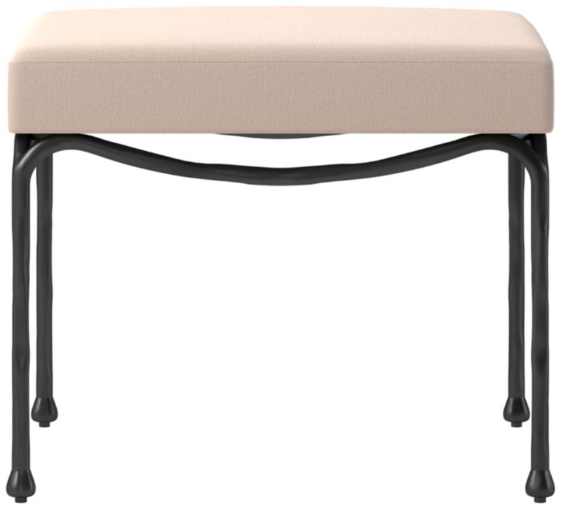 Designed by NYC-based Brett Beldock, stool recalls sculptural art deco designs. The matte black metal base features decorative swags that gracefully drape from one leg to the next. The spare silhouette lends itself to use in multiples as a bench in front of the bed. CB2 exclusive.