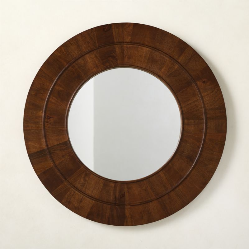 Kane Walnut Wood Round Wall Mirror 36"Kane Aged Brass Round Wall Mirror 36"