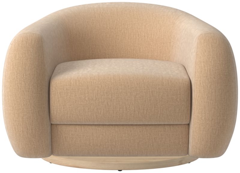 Boucle swivel chair by Los Angeles-based designer Ross Cassidy strikes the perfect balance between modern style and cloud-like comfort. Floating atop a natural oak swivel base, the curved back hugs a generously cushioned seat. Developed exclusively for CB2, It's easily one of our most comfortable swivel chairs to date. CB2 exclusive.