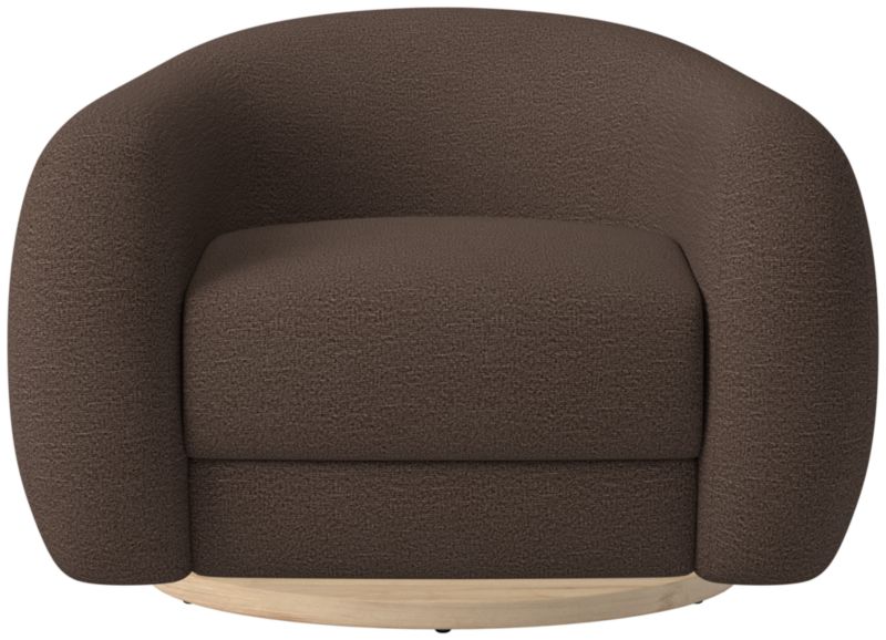 Boucle swivel chair by Los Angeles-based designer Ross Cassidy strikes the perfect balance between modern style and cloud-like comfort. Floating atop a natural oak swivel base, the curved back hugs a generously cushioned seat. Developed exclusively for CB2, It's easily one of our most comfortable swivel chairs to date. CB2 exclusive.