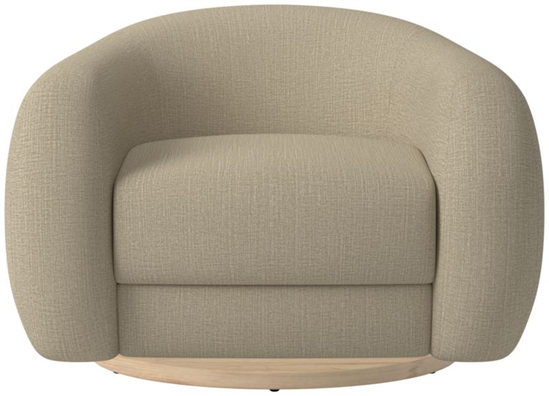 Boucle swivel chair by Los Angeles-based designer Ross Cassidy strikes the perfect balance between modern style and cloud-like comfort. Floating atop a natural oak swivel base, the curved back hugs a generously cushioned seat. Developed exclusively for CB2, It's easily one of our most comfortable swivel chairs to date. CB2 exclusive.