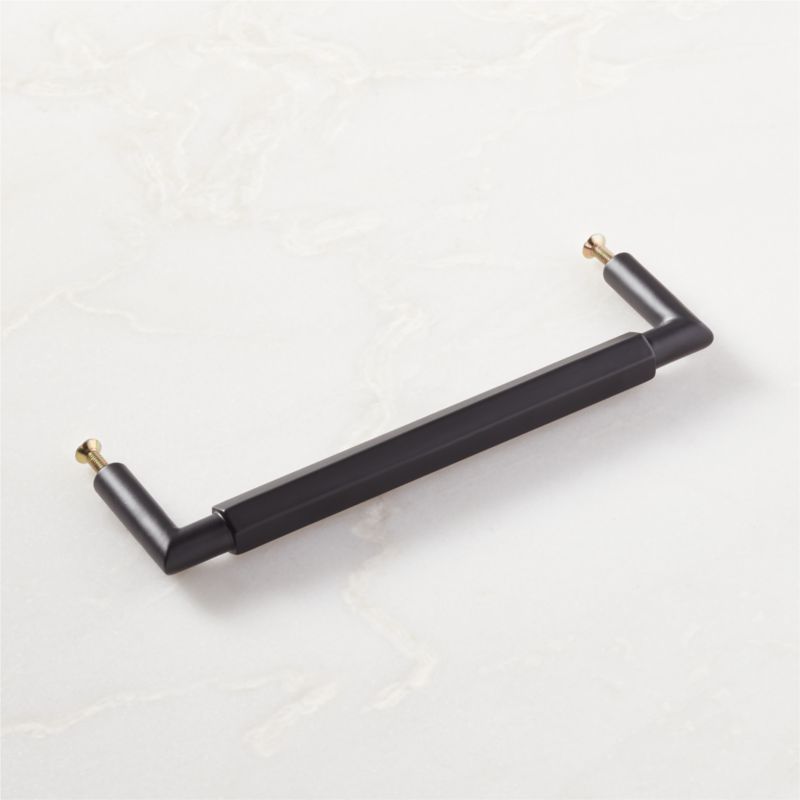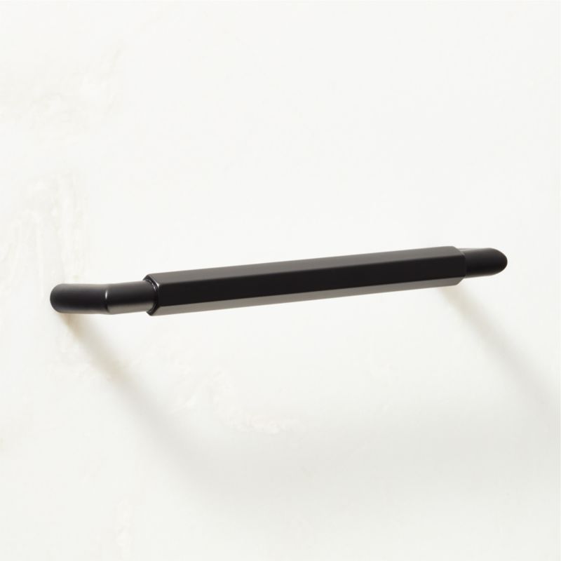 Bold hexagonal cabinet handle is inspired by the geometric architecture of French colonial pillars. Simple but modern form offers a pleasant heft with crisp, defined lines in black. CB2 exclusive.