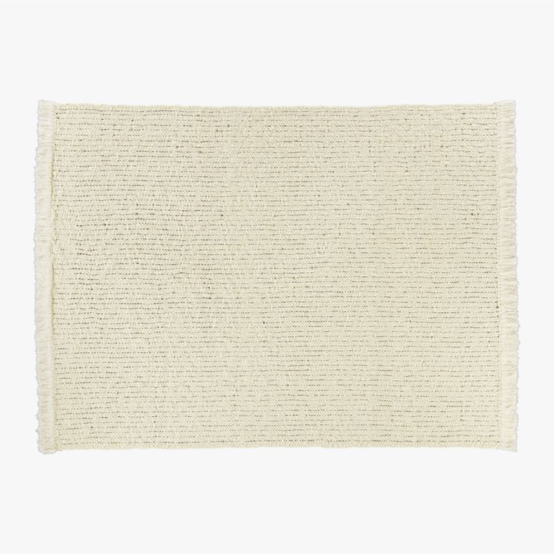 Handwoven by female artisans in India, chunky textured rug looks and feels like a cozy sweater. First, yarn is handspun in the village, then handwoven on a handloom to achieve this plush pile and gorgeous tonal variation. Rug is finished with thick ivory fringe on both ends. CB2 exclusive.
